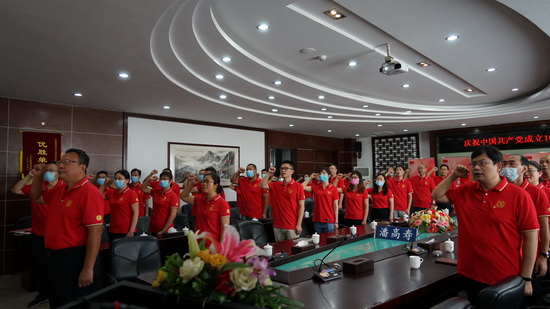 潘高壽黨政領導班子、全體黨員在公司會議室集中收看大會直播,熱烈慶祝中國共產黨成立100周年!在場人員無不激動、感慨,中國共產黨已走過了100年波瀾壯闊的光輝歷程,并將繼續團結帶領人民踏上實現第二個百年奮斗目標新的趕考路。
