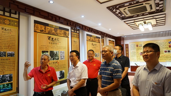 在企業(yè)文化室,潘高壽非物質(zhì)文化遺產(chǎn)傳承人盧其福為調(diào)研組詳細(xì)介紹白云山潘高壽的發(fā)展歷程。白云山潘高壽是國(guó)務(wù)院首批認(rèn)定的“中華老字號(hào)”,“潘高壽中醫(yī)藥文化”、“潘高壽涼茶保密處方和專業(yè)術(shù)語(yǔ)”分別入選國(guó)家級(jí)非物質(zhì)文化遺產(chǎn)名錄,白云山潘高壽成為全國(guó)唯一一家坐擁“雙國(guó)遺”的中藥企業(yè)。